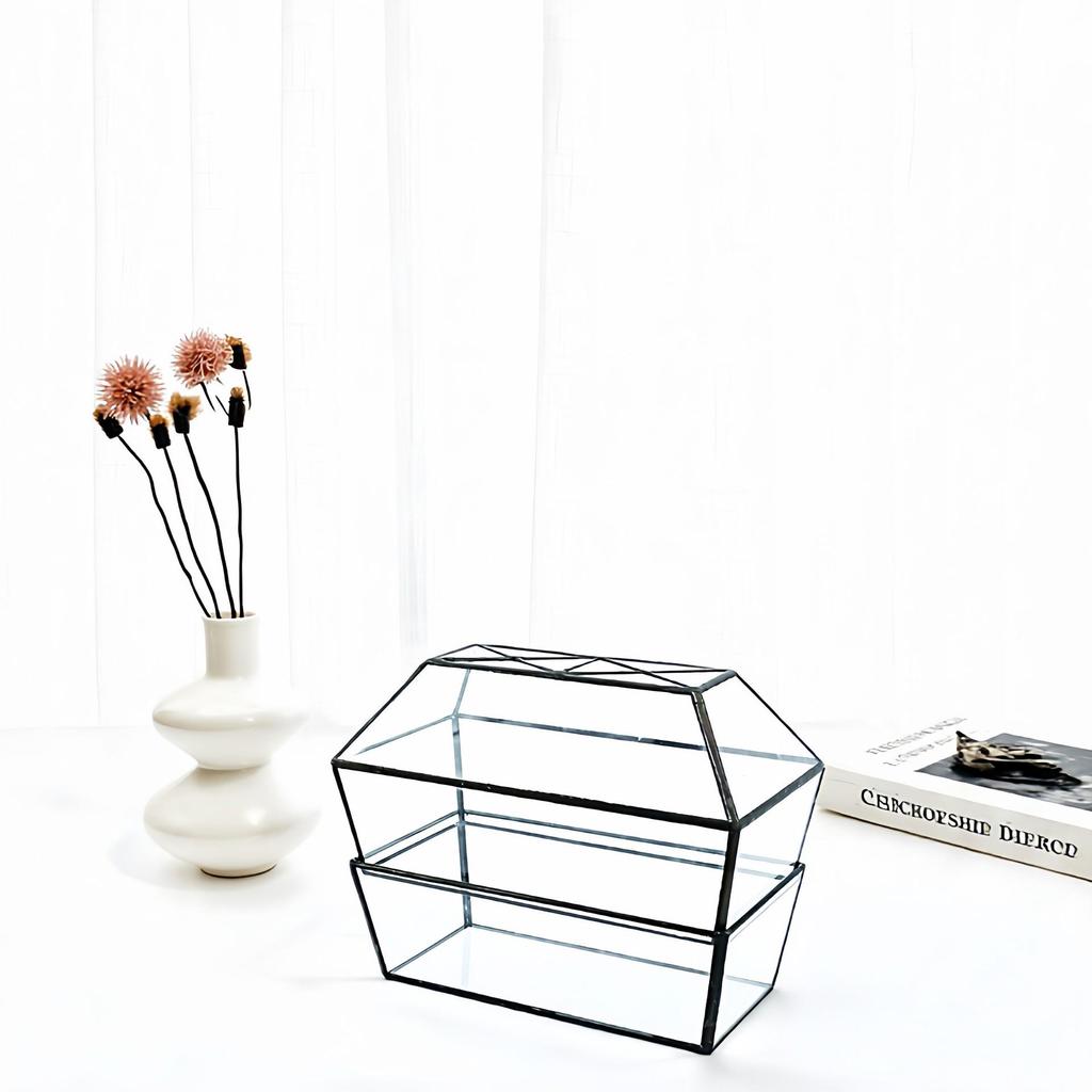 Geometric Glass Greenhouse: Preserved Flower & Moss Succulent Display for Home & Restaurant Decor