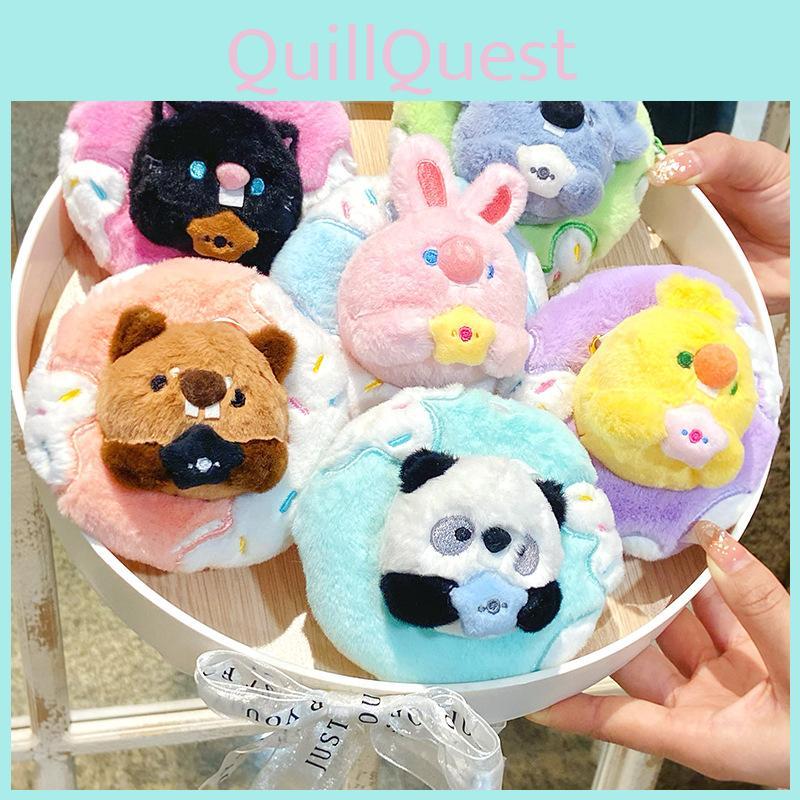 Adorable Plush Donut Tooth Keychain Accessory Featuring Cute Panda Bunny Chick
