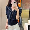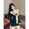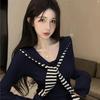 Women's Navy Collar Knit Dress: Spring Style, Sexy, Hip-Hugging, Two-Piece Look, Shawl Sweater Design