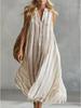 Bohemian Striped Sleeveless V-Neck Button Long Dress Adjustable