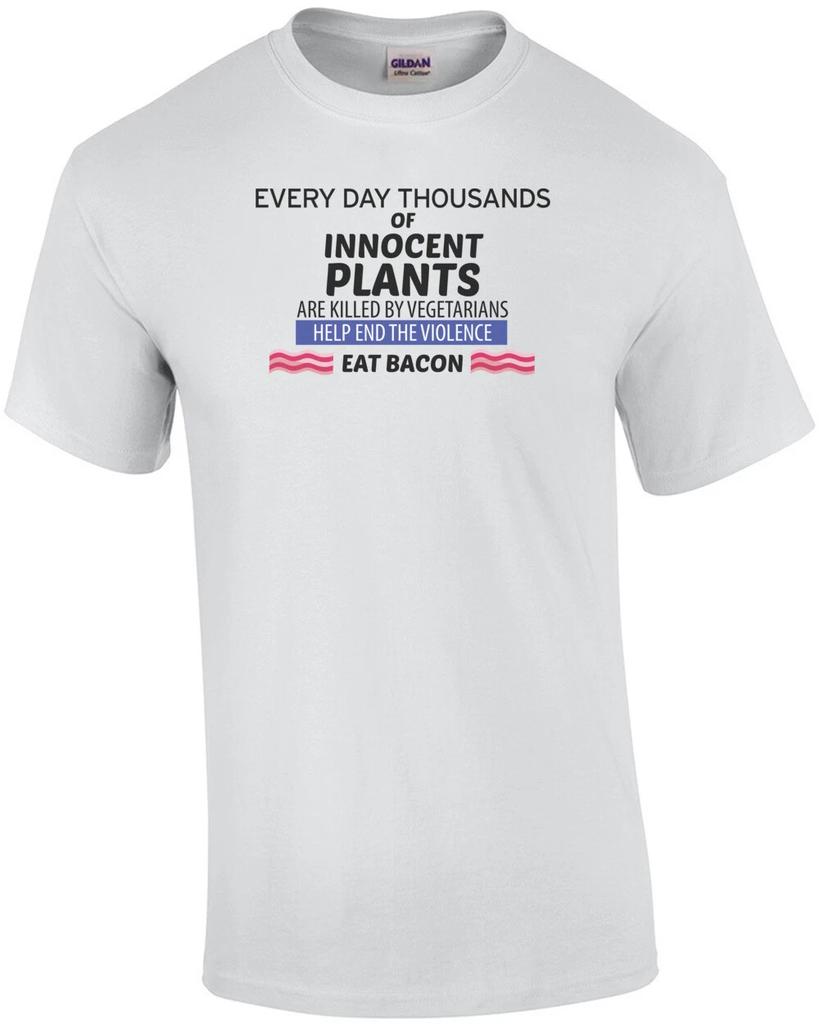 Every day thousands of innocent plants are killed by vegetarians eat bacon t-...