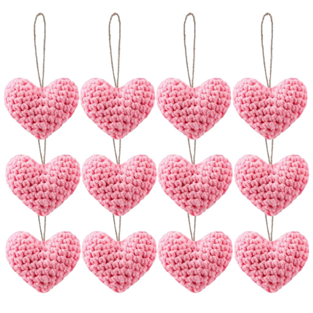 12 Bucăți Pandantiv Inimă Tricotată Agățat Manual Croșetat Inimă Ornament pentru Pom Cadou pentru Prieten Cadou pentru Profesor