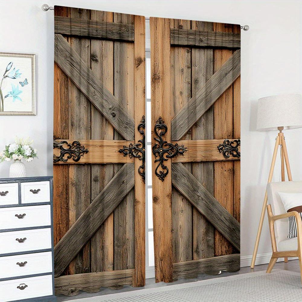 Farmhouse Rustic Barn Door Curtains Panel Polyester Pocket Rod Top Living Room Bedroom Office Kitchen Curtain Light Filtering For Sitting Made Of
