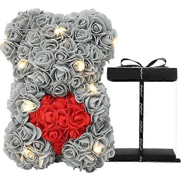 Valentine's Day, rose bear handmade rose teddy bear rose teddy bear - Gift for Valentine's Day, Mother's Day, transparent gift box (gray)