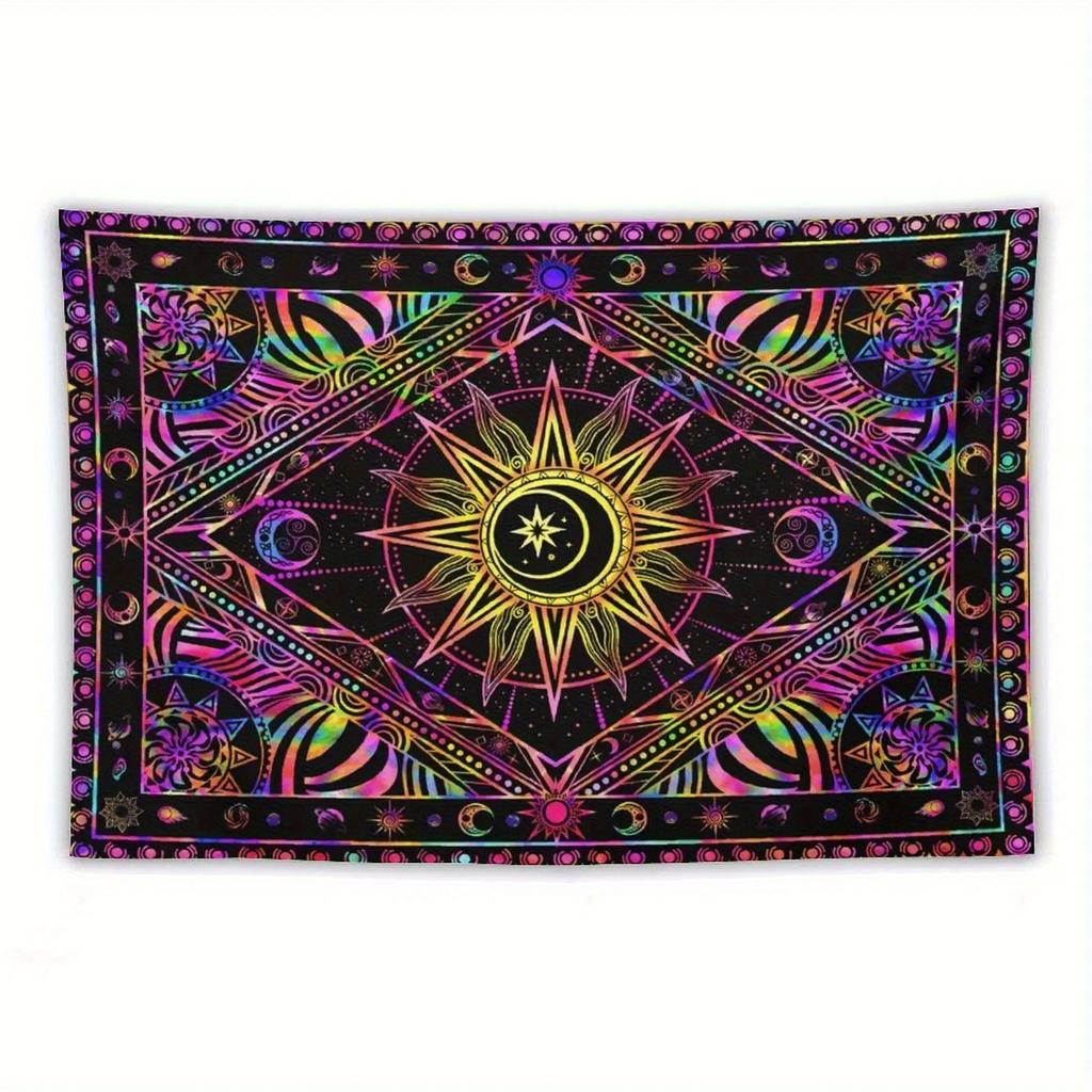 VIKAMA Bohemian Mandala Tapestry UV Reactive Psychedelic Sun Wall Hanging for Bedroom Dorm Yoga Room Decor — cumpără online cu livrare gratuită oriunde în lume!