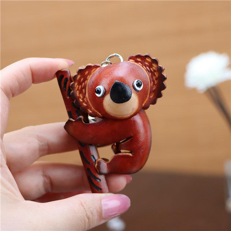 First Layer Cowhide Koala Pendant Car Keychain Cartoon Bag Pendant Accessories Creative Birthday Gift Gift