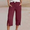 Women's Fashion Color Drawstring Split Leg With Pockets Loose Casual Seven-Eighths 7/10 Pants