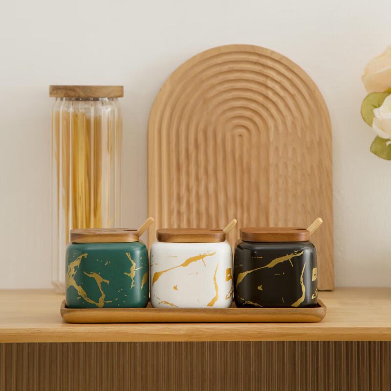 LIU Japanese Ceramic Seasoning Jar Set (3-Piece, Marble Pattern) — cumpără ieftin în cadrul magazinului online Joom