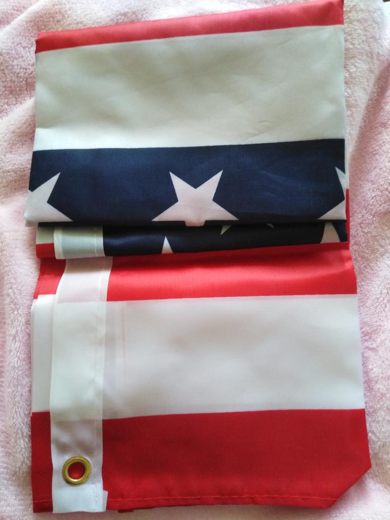 Флаг супер. Хорошо везде прошит, никакие нитки не торчат. С одной стороны есть два крепления, за которые можно его подвесить. Ну или булавками к стене, там уже как кому угодно. По размеру всё сходится. Спасибо продавцу