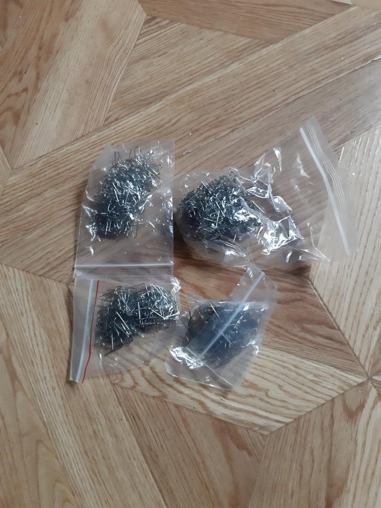 4 пакетика с разными скобами ( не пересчитывал). Дошли до Нижнего за 3 недели. Заказывал еще и паяльник для них, но он задерживается.