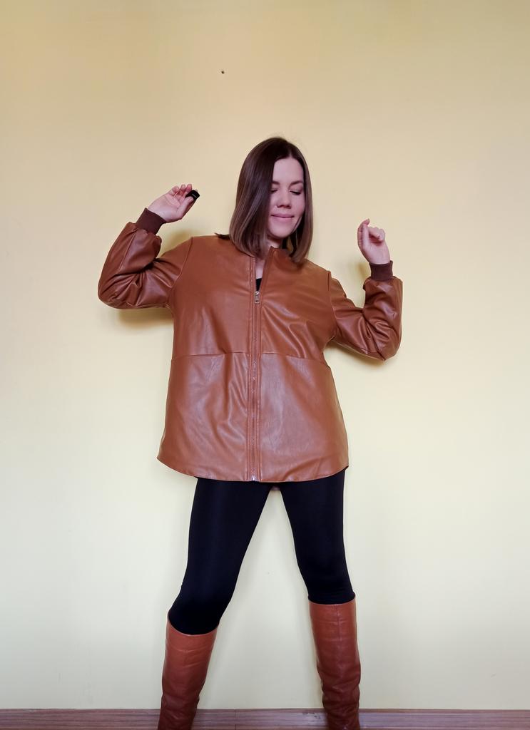 🧥 Легкая кожаная куртка из 21top Посмотрите какой огромный размерный ряд аж до 7XL! Выбрала цвет "кофейный" по факту он рыже-коричневый (чуть больше рыжит, чем на картинке продавца), но мне нравится такой. Качество очень порадовало - кожа хоть и искусственная, но это не клеенка дешевая, а вполне себе достойная на вид. Спереди большие квадратные карманы - очень удобные, но я бы добавила боковые кармашки тоже. Воротник сделан как у бомбера, но в отличие от модели бомбера данная куртка выглядит более классической, менее обязывающей к какому-то определенному стилю. Подкладка стеганная оранжевого цвета. Я пристально изучила другие отзывы, и взяла себе размером побольше, чтобы рукава на мой рост 169 см и широкие плечи были длинные. Сама я вообще-то размера XS, но что-то подстреленное короткорукавное не хотелось, так что я заказывала XXL, чтобы получился как бы оверсайз. По рукаву вышло как раз, по размеру конечно просторно, но вроде смотрится неплохо с моим ростом. Куртка довольно длинненькая получилась и объемная, как я хотела. При этом вроде и в плечах и спине не шибко потонула. Как вам такой размер на мне? Норм? Пишите в комментариях. Я думаю что неплохо смотрится. Рекомендация: если ваш рост похож, но плечи не такие широкие как у меня, берите XL, думаю с длинной рукава попадёте. Куртка мне нравится, на тёплое межсезонье поношу. Есть ещё в черном и красном расцветках! Рекомендую!