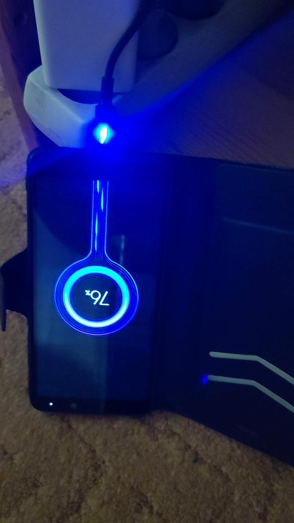 Какой милый кабель! я прям рада! Ещё и светится синей молнией возле гнезда зарядки , когда включён. Благодарю 😘😘😘