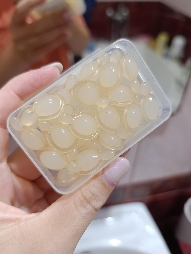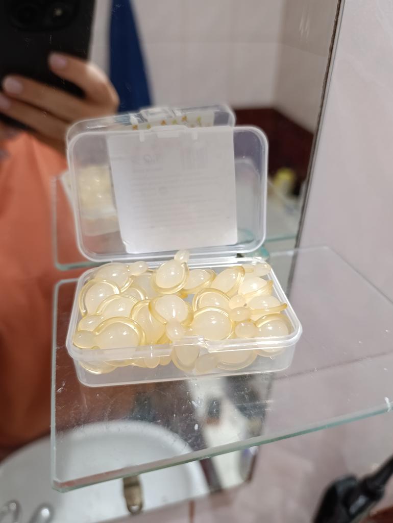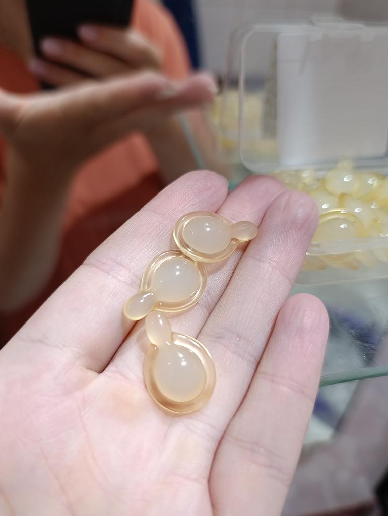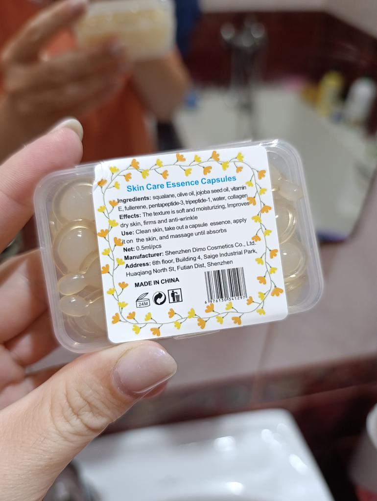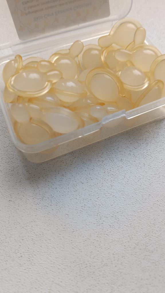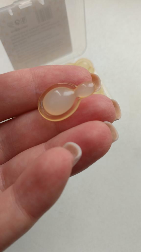 Восстанавливающая эссенция. Полагаю, что крем или эссенция в капсулах, это самый оптимальный вариант. Каждый раз ты открываешь капсулу на одно применение, соответственно нет загрязнения бактериями, как в кремах, где приходится каждый раз брать содержимое пальцем. Также, удобно брать с собой в дорогу. Заявленные свойства-увлажнение, уменьшение мелких морщинок, лифтинг. В составе есть фруктовые масла, вит Е, экстракт центеллы, корня женьшеня, ниацинамид и т.д. и ряд вспомогательных компонентов. Капсулы мягкие, желатиновые. Одной такой капсулы хватает чтобы нанести эссенцию на лицо и шею. Содержимое жирное, но впитывается достаточно быстро.Кожа на ощупь становится гладкая, бархатистая. В магазине большинство средств (кремов, сывороток, эссенций представлено в капсульном ввиде. Много отзывов. Доставка месяц. Мне подошло. 💛
