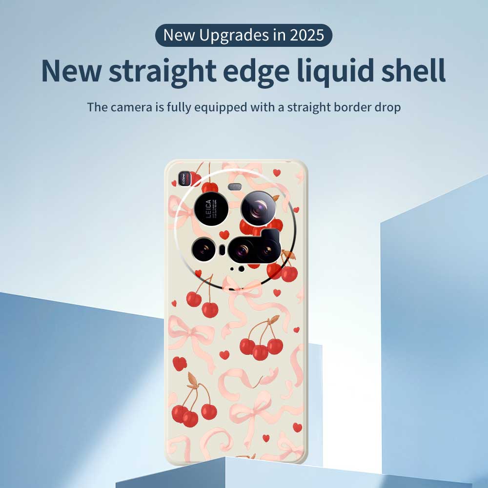 For Xiaomi 15 Ultra Case Big Bow Cherry Pattern Printing Straight Edge TPU Phone Back Cover