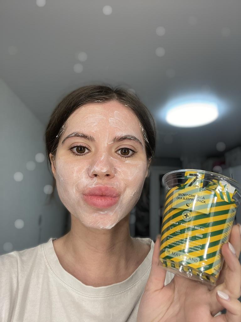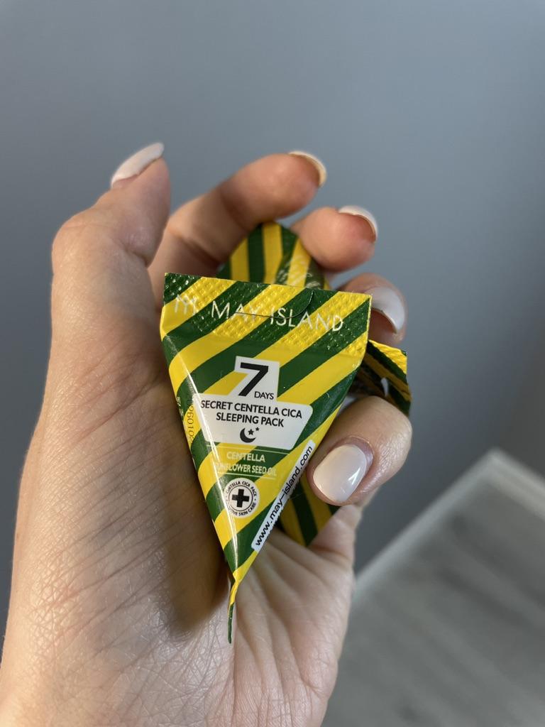 😍😍MASKA MÁJOVÝ OSTROV 7 dní Secret Centella Cica Sleeping Pack😍😍😍 Maska, ktorá sa nanáša večer, vytvára na pokožke hydratačnú membránu a zanecháva pokožku vlhkú a hodvábnu. * Dvojitá funkčná nočná starostlivosť o bielenie + zlepšenie vrások * Jedno balenie na 7 dní v trojuholníkovom vrecku - HLAVNÉ INGREDIENCIE - 1. Gotu kola extract 2. Slnečnicový olej 3.vitamín A a vitamín E AKO POUŽIŤ 1. Po večernom umytí som použila jedno vrecúško a jemne naniesla na celú tvár a išla som spať 🌈🌈🌈🌈 ZÁVERY Milujem túto masku, pretože zanecháva moju pleť naozaj hodvábnu💯💯💯💯