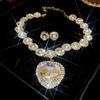 Geometric splicing with diamond heart necklace and earring set, exaggerated design from Europe and America, collarbone chain