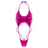 Dámsky metalický overal s halterovým výstrihom, dizajn s otvoreným chrbtom, bedrové popruhy, spodná bielizeň s G-string