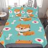 Cartoon Shiba Inu King Queen Bedding Set Yellow Pet Puppy Duvet Cover Cherry Blossoms Tree Quilt Cover Polyester Comforter Cover