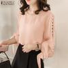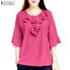 ZANZEA Women Casual Round Neck Summer Short Sleeve Plain Blouse
