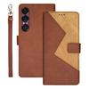 IDEWEI For Sony Xperia 1 VII Case Card Slots Splicing Color Leather Phone Cover with Wrist Strap
