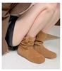 Internet celebrity heap boots 2025 new round head versatile flat bottom western cowboy boots matte leather short boots women's spring and autumn