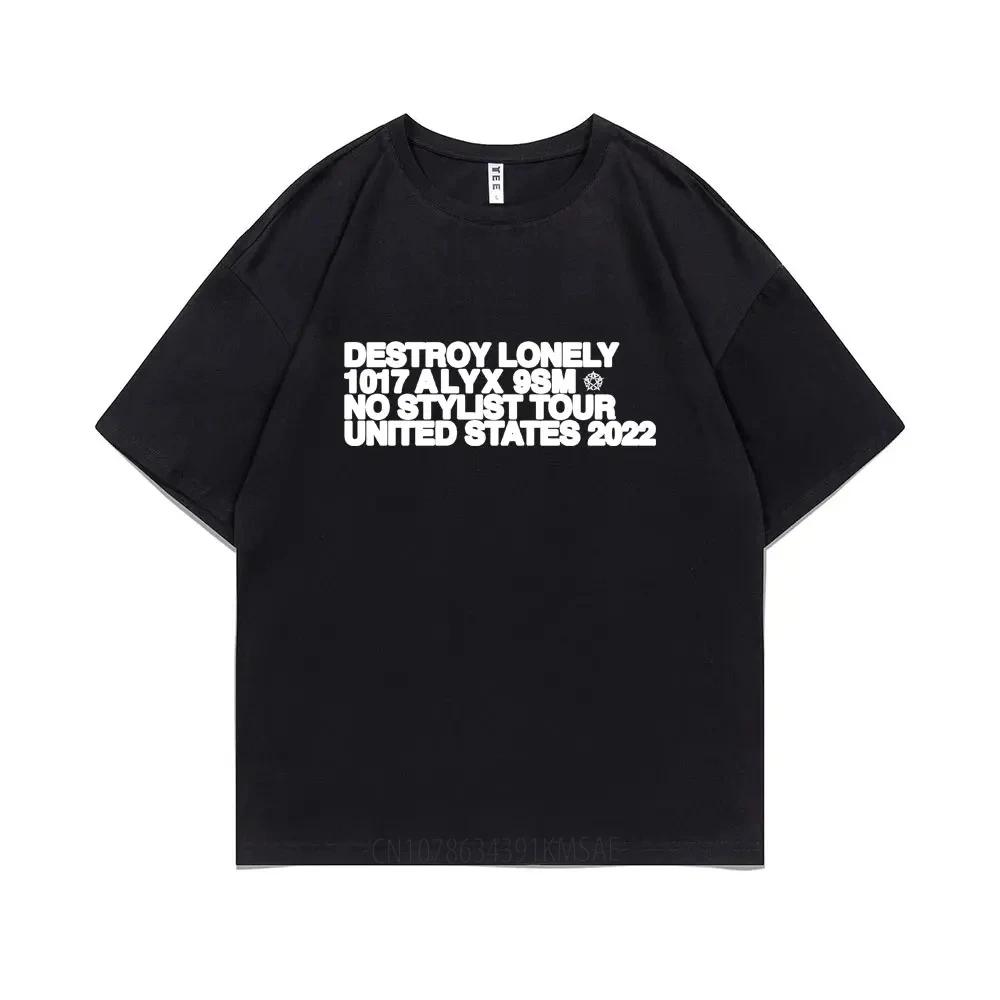 Rapper Destroy Lonely Alyx Print Tshirt Mens Oversized Cotton Short Sleeve Tees Men Hip Hop Rap Style T-shirt Man Street T Shirt
