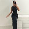 Sexy PU Leather Bodycon Dress Women Round Neck Solid Retro Sleevless Long Dress Y2k Leather High Waist Evening Party Dress 2026