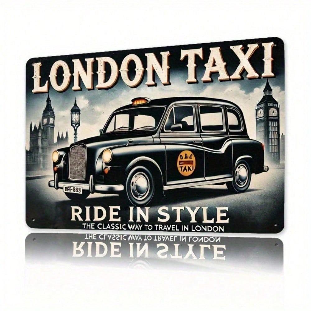 Vintage London Taxi Metal Wall Sign 12x8 Inch Black Cab Decor for Home Bar Retro British Pub Sign Office Cafe Souvenir
