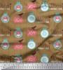 Soimoi Grey Japan Crepe Satin Fabric Bird,Stripe & Baubles Christmas Print Fabric by the metre 42 Inch