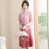 Summer Chinese-style Chiffon Dress: Printed Short-sleeved Dress with Round Collar and Waistline, Perfect for a Graceful and Charming
