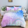 Regnbågsgradient Moln påslakanset Färgglada mönster sängkläder för flickor Dam sovrum dekorativt överkast