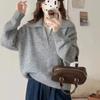 Design sense solid color loose knitted sweater women wear fashionable retro big lapel sweater women autumn and winter lazy wind