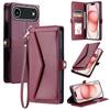 For iPhone 17 Air Leather Case with Wrist Strap Wallet Stand Phone Cover