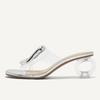 Mode Liyke Mode Utskuren Metall Designer Slides Kvinnor Transparenta Tofflor Fyrkantig Tå Konstiga Klara Höga Klackar Mules Skor Sandal