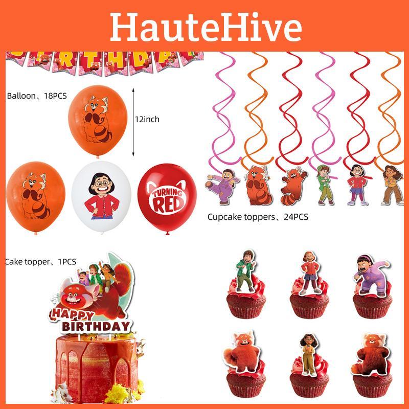 Red Birthday Turning Party Cartoon Decorations Banners Cake Topper Balloon Set