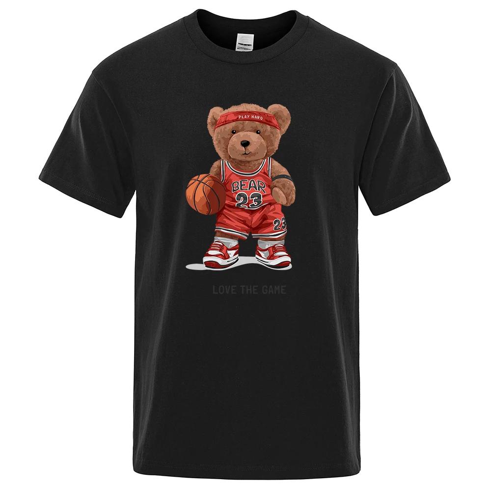 Nallebjörn 23 Älska spelet Spela basket Tryck Rolig T-shirt Män Lös Oversize Bomullskvalitet Kortärmad För Man 80346