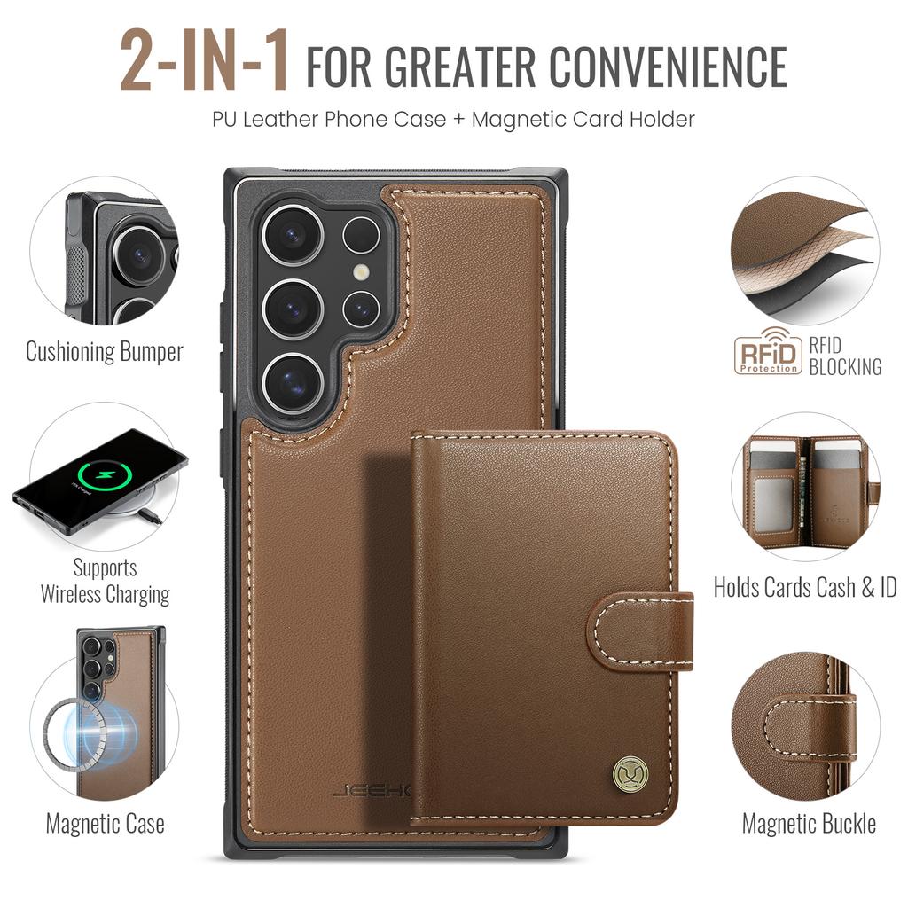 För Samsung Galaxy S26 Ultra Magnetiskt Fodral JEEHOOD J09 RFID-blockerande Hållare för Kreditkort Läderbaksida Fodral till Telefon — Köp billigt online på Joom butik