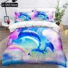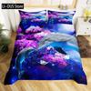 Galaxy sängkläder delfin täcke för barn vuxen påslakan havsdjur sängöverkast stjärnhimmel blå rumsdekor 3 delar