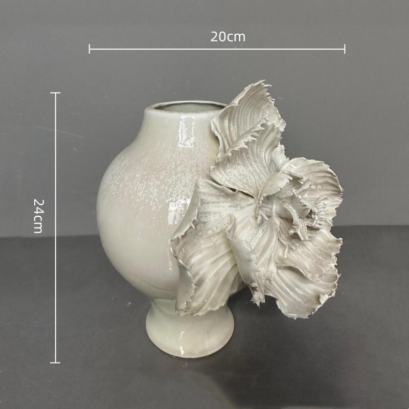Keramikvas Vit Tredimensionella Blomblad Handgjorda Pioner Blomvas Keramiska Hantverk Heminredning