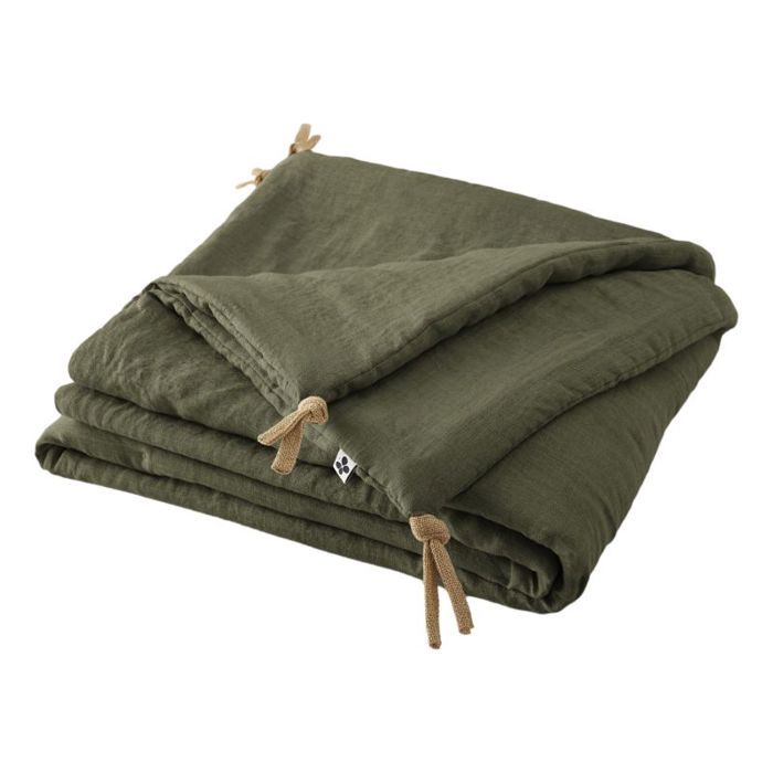 Täcke eller vadderad sängklädsel 90 x 200 cm "Soline" Tvättat linne - Soline Timjan