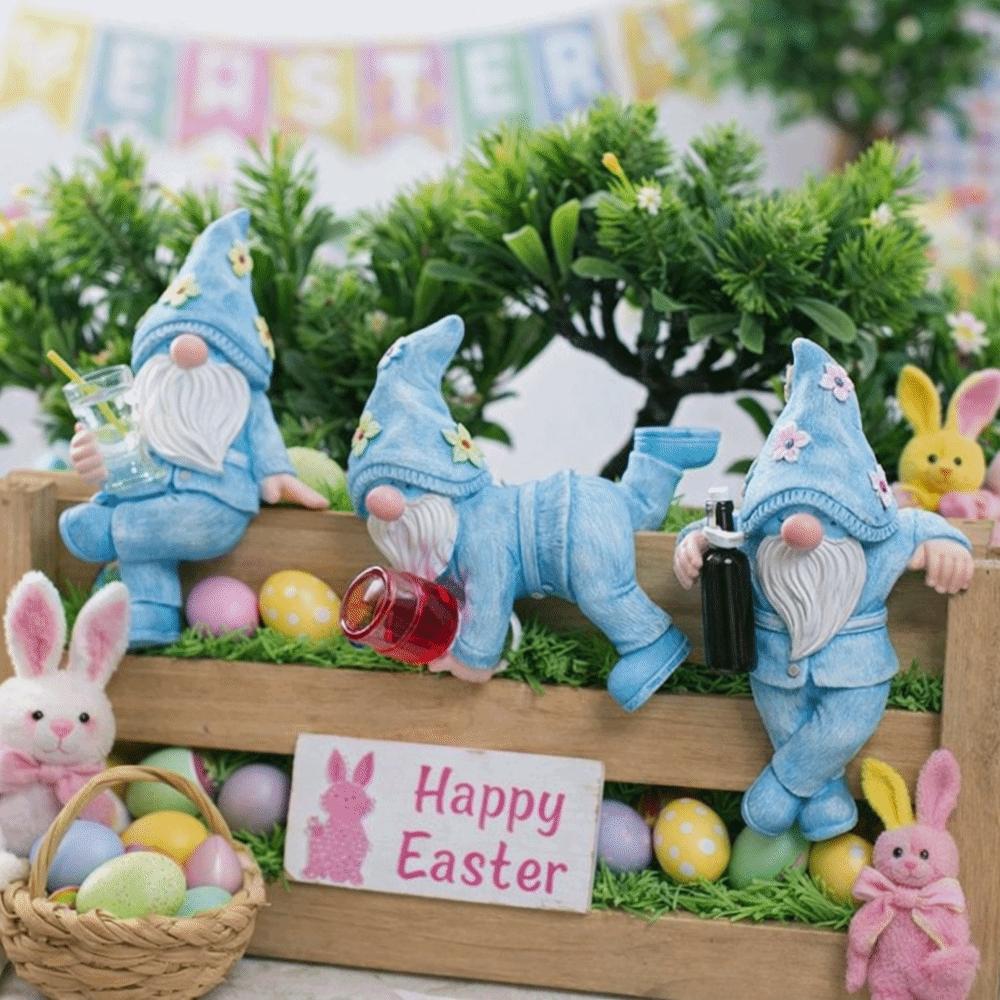 3-delat Set Påsk Trädgårdstomte Liten dvärg Älva Hartsfigur Trädgårdsstaty Heminredning