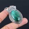 Oval Kesim Yeşil Azurit Krizokol 925 Ayar Gümüş Kolye Takı, El Yapımı Bohem Tarzı Kolye