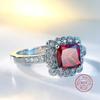 Kadın Yüzük 925 Ayar Gümüş Bant Kare Kesim Doğal Kırmızı Garnet Değerli Taşlı Nişan, Yıldönümü ve Düğün İçin Yüzük