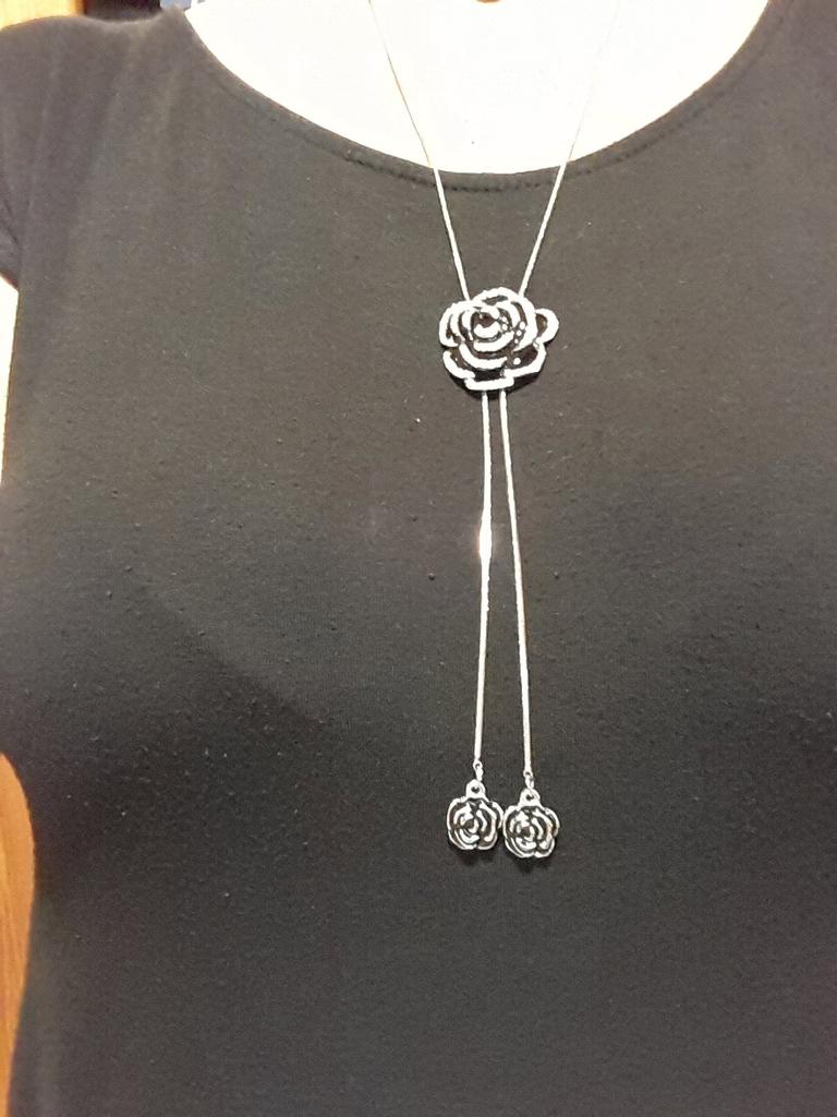 Siyah Çiçek Gül Gerdanlık Kolye ve Kolye Kadınlar için Moda Uzun Kolye Kadın Collier Femme — tüm dünyaya ücretsiz teslimat ile online ürün satın alın!