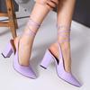 Turquoise Faux Leather Thick Heel Pumps for Women Ankle Strap Sandals for Women Casual Shoes Ma-028