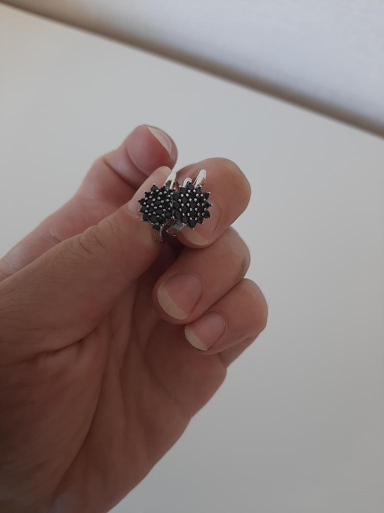 Black Awn Siyah Taşlı Halka Küpe