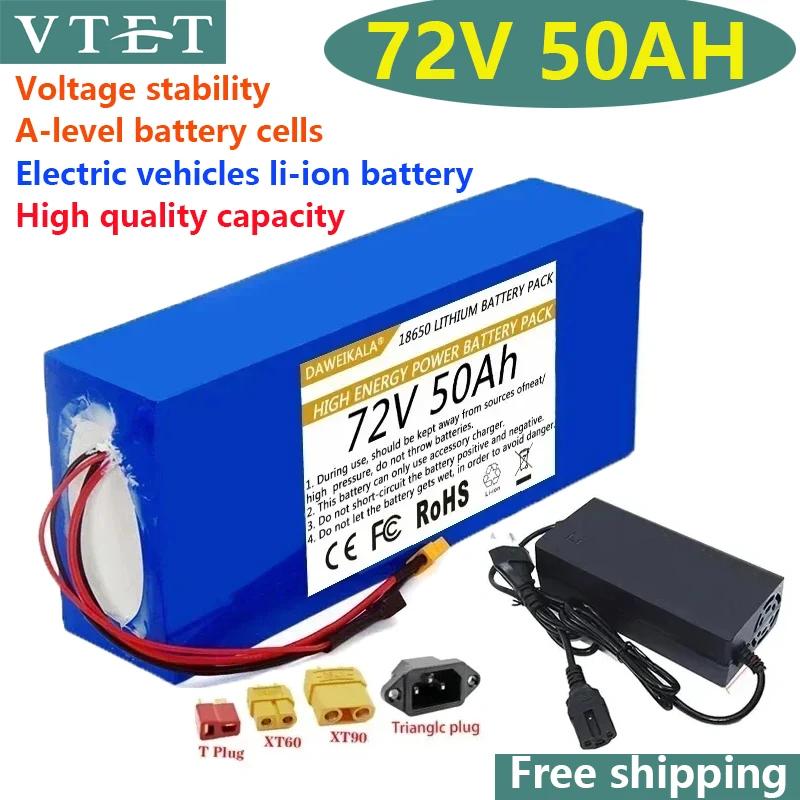 VTET 2024 72V 50-20Ah 18650 Lithium Battery Pack 84V BMS 3000W High Power Battery+Free 3A Charger