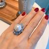 Zirkon Beyaz Elmas Fritilarya İnci Yüzük Kadın Ziyafet İnci Takı Ayarlanabilir Yüzük Yüksek Moda