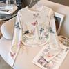 Kadın Yazlık Uzun Kollu İnce Çapraz Oyuk Sırtı Açık Kelebek Baskılı Hafif Şeffaf Bayan Tişörtü