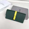 Yeni Hakiki Deri Kadın Cüzdanı Üst Kat Sığır Derisi Liçi Desenli İpli Kontrast Renkli Uzun Üç Katlı Çanta